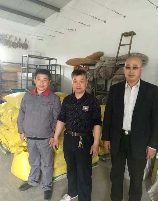 山西省農(nóng)科院楊成元研究員和山花爛漫公司經(jīng)理賀虎平、技術(shù)員賀毛毛挑選有機(jī)谷種時合影