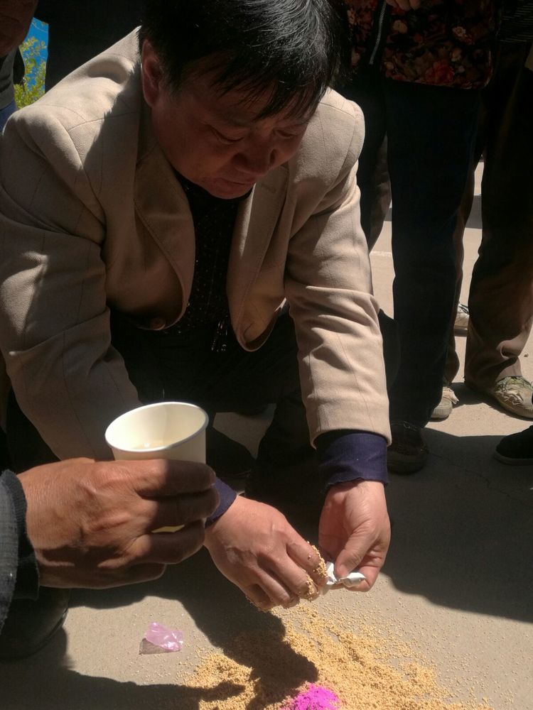 專(zhuān)家為農(nóng)戶(hù)現(xiàn)場(chǎng)進(jìn)行拌種技術(shù)示范指導(dǎo)