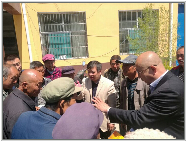 山花爛漫農(nóng)業(yè)綜合開(kāi)發(fā)有限公司賀虎平董事長(zhǎng)為農(nóng)戶(hù)講解相關(guān)政策