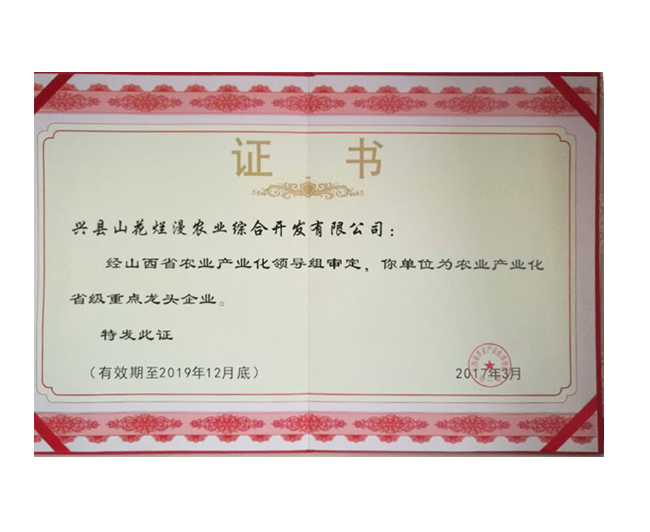 興縣山花爛漫農(nóng)業(yè)綜合開發(fā)有限公司是山西省農(nóng)業(yè)產(chǎn)業(yè)化重點(diǎn)龍頭企業(yè),公司成立于2008年,法人代表賀虎平,注冊(cè)資本1000 萬元,現(xiàn)有員工 30 人。